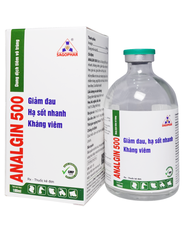 Analgin 500 được chỉ định để giảm đau, hạ sốt nhanh, kháng viêm ở bê, nghé, gia súc, heo và chó.